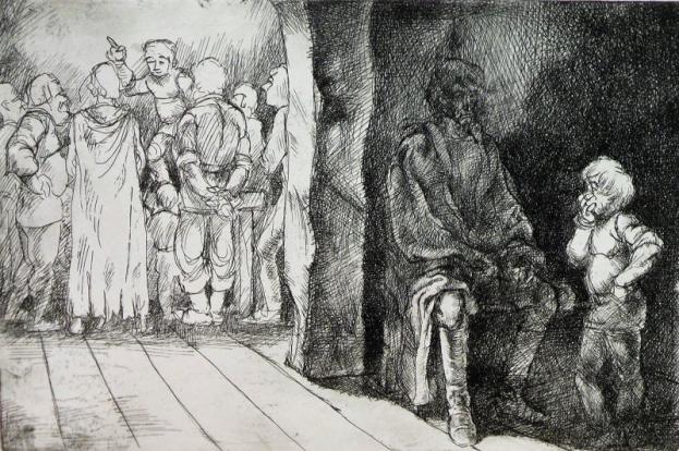 Művész Takáts Márton Év 1992 Technika rézkarc papír Méret 185 × 280 mm Jelzés jelezve alatta, A Pajkos Póniban /Rézkarc/ Próba, Takáts '92 Kategória grafika ID 003379