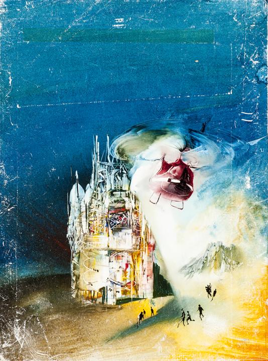 Borítóterv az Univers francia sci-fi antológiához (19. szám, Helikopter egy toronyház körül)