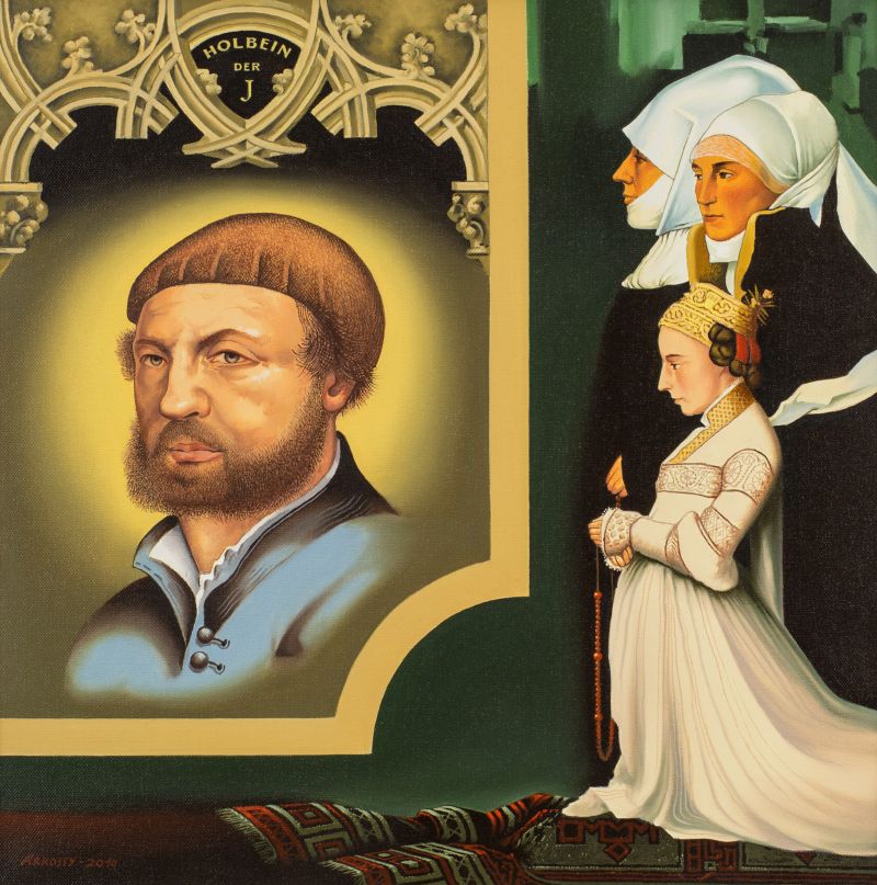- Három hölgy: A Darmstadti Madonna című kép részlete után, 1526 körül, Schlossmuseum, Darmstadt