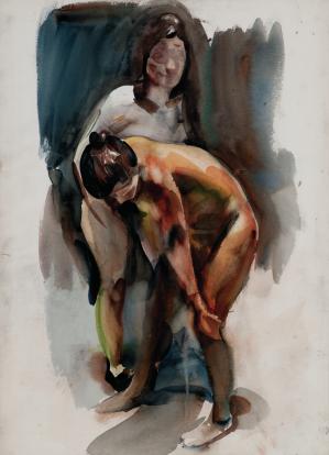 Two Nudes Leaning Forward