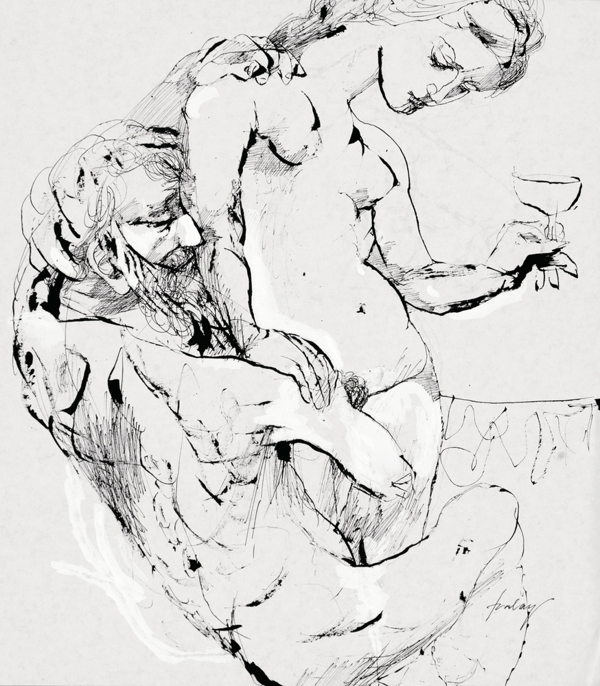 Title var Lovers Artist Szalay Lajos Creation year 1980 körül Technique india ink paper Size 390 × 345 mm Sign signed bottom right, Szalay Genre graphics ID 002128