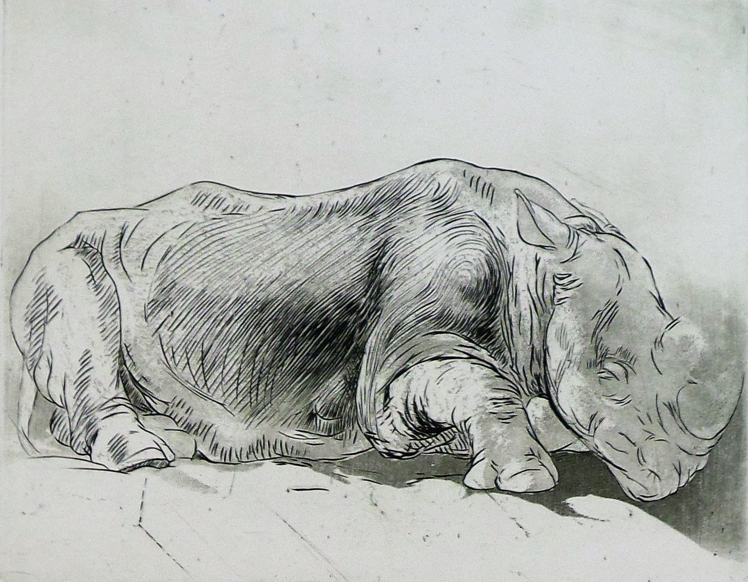 Artist Takáts Márton Creation year 1994 Technique aquatint paper Size 125 × 155 mm Sign signed at the bottom, Rhino II. /Rézmetszet, Aquatinta/ E.A., Takáts M, TM 94 [szárazpecsét] Genre graphics ID 003529